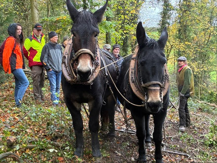 Nachmittagsprogramm, Holzrücken mit Maultieren, Besichtigung der Trüffelzucht, Agroforst und Ziegenhof war für jede*n etwas dabei
