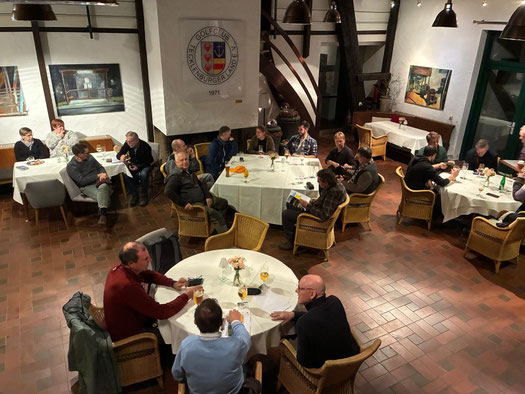 Zufrieden, dass bei unserer Vereinssitzung der alte, neue Vorstand bestätigt wurde und die Kasse stimmt gab es ein leckeres Abendbrot im "Golf-Restaurant" . Diejenigen die sich nach einen erfüllenden, ausgefüllten Tag noch nicht zu sehr ins Bett gezogen fühlten, ließen den Abend im "Backes" mit angeregten Gesprächen ausklingen.